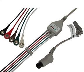 EKG probe with 5 leads - requires disposable button type electrodes |